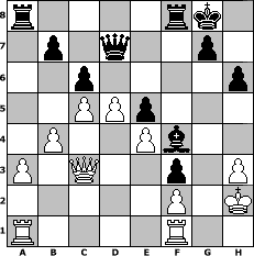Partie-Notation im PGN-Format [Event "Einfach nur Schach 4"] [Site "www.mySchach.de"] [Date "2024.01.26"] [Round "2"] [White "Campino1986"] [Black "peter58"] [ECO "C60"] [WhitemyELO "1477"] [BlackmyELO "1534"] [Result "0-1"] [TimeControl "10/864000"] [WhiteDays "08"] [BlackDays "29"] [MySchachNr "131474"] 1. e4 e5 2. Nf3 Nc6 3. Bb5 Nge7 4. Bxc6 Nxc6 5. O-O Bc5 6. d3 Be7 7. Nc3 O-O 8. Be3 d6 9. a3 Be6 10. h3 Qd7 11. Ne2 h6 12. c4 f5 13. Qd2 f4 14. Bxa7 Rxa7 15. b4 Nd8 16. Kh2 Nf7 17. Nc3 Ng5 18. Nxg5 Bxg5 19. Nb5 Raa8 20. d4 c6 21. d5 Bxh3 22. Nxd6 Qxd6 23. gxh3 f3 24. c5 Qd7 25. Qc3 Bf4+ 0-1 Stellungs-Notation im FEN-Format r4rk1/1p1q2p1/2p4p/2PPp3/1P2Pb2/P1Q2p1P/5P1K/R4R2 - - - 3 26 Geschlagene Figuren Weiss: Geschlagene Figuren Schwarz: Klicken Sie auf eine geschlagene Figur um den gewünschten Zug darzustellen!