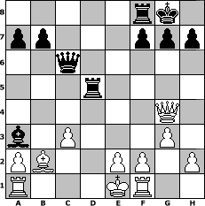 Partie-Notation im PGN-Format [Event "Erstes Hard Rock Cafe 1971"] [Site "www.mySchach.de"] [Date "2021.05.29"] [Round "1"] [White "Robert"] [Black "Helmut48"] [ECO "A45"] [WhitemyELO "1717"] [BlackmyELO "2020"] [Result "0-1"] [TimeControl "10/2592000"] [WhiteDays "24"] [BlackDays "90"] [MySchachNr "122330"] 1. d4 Nf6 2. g3 d5 3. Bg2 c5 4. c4 dxc4 5. Nf3 Nc6 6. Qa4 cxd4 7. Nxd4 Qxd4 8. Bxc6+ Bd7 9. Bxd7+ Qxd7 10. Qxc4 Rc8 11. Qf4 Nd5 12. Qd2 Qh3 13. Nc3 Nxc3 14. bxc3 Qg2 15. Rf1 e5 16. Qd3 Qc6 17. Bb2 Rd8 18. Qf5 Be7 19. Qxe5 O-O 20. Qf5 Rd5 21. Qg4 Ba3 0-1 Stellungs-Notation im FEN-Format 5rk1/pp3ppp/2q5/3r4/6Q1/b1P3P1/PB2PP1P/R3KR2 - Q - 5 22 Geschlagene Figuren Weiss: Geschlagene Figuren Schwarz: Klicken Sie auf eine geschlagene Figur um den gewünschten Zug darzustellen!