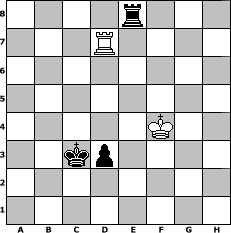 Partie-Notation im PGN-Format [Event "Schneeturnier"] [Site "www.mySchach.de"] [Date "2010.02.08"] [Round "2"] [White "bruno"] [Black "deepsabel"] [ECO "A13"] [WhitemyELO "1773"] [BlackmyELO "1990"] [Result "0-1"] [TimeControl "10/2592000"] [WhiteDays "239"] [BlackDays "216"] [MySchachNr "63142"] 1. c4 e6 2. Nc3 Nf6 3. e4 d5 4. cxd5 exd5 5. e5 Ne4 6. Nf3 Nc6 7. Bb5 Be7 8. d3 Nxc3 9. bxc3 O-O 10. O-O Bd7 11. Rb1 b6 12. d4 Na5 13. Bd3 c5 14. Qc2 h6 15. h3 Qc8 16. Re1 c4 17. Be2 Bf5 18. Qb2 Bxb1 19. Qxb1 Nb7 20. Bd1 Nd8 21. Bc2 Ne6 22. h4 Qc6 23. a4 a6 24. Bd2 b5 25. a5 Rab8 26. Qb2 Rb7 27. Bb1 Rfb8 28. Qc2 Nf8 29. e6 fxe6 30. Ne5 Qe8 31. Ng6 Nxg6 32. Qxg6 Qxg6 33. Bxg6 b4 34. Rxe6 b3 35. Rxa6 b2 36. Bb1 Bxh4 37. Bf4 Re8 38. Be5 Rb3 39. Kh2 Rxc3 40. Rb6 Rb3 41. Rg6 Rb7 42. a6 Ra7 43. Rb6 c3 44. Rc6 Bxf2 45. Rxc3 Rxe5 46. dxe5 Bd4 47. Rc6 Bxe5+ 48. Kh3 Kf7 49. Kg4 Ra8 50. Rb6 Ke7 51. Bd3 Rf8 52. g3 Kd7 53. Bb5+ Kc7 54. Rc6+ Kb8 55. Rb6+ Ka8 56. Bd3 Rf2 57. Rb7 Rg2 58. Kf5 Rxg3 59. Kxe5 Rxd3 60. Rxb2 Ka7 61. Rb7+ Kxa6 62. Rxg7 Kb5 63. Rg8 h5 64. Rb8+ Kc4 65. Rc8+ Kb3 66. Rh8 Kc3 67. Rxh5 d4 68. Kf4 Re3 69. Ra5 Re8 70. Ra3+ Kb4 71. Rg3 Kc4 72. Rg7 d3 73. Rd7 Kc3 0-1 Stellungs-Notation im FEN-Format 4r3/3R4/8/8/5K2/2kp4/8/8 - - - 2 74 Geschlagene Figuren Weiss: Geschlagene Figuren Schwarz: Klicken Sie auf eine geschlagene Figur um den gewünschten Zug darzustellen!