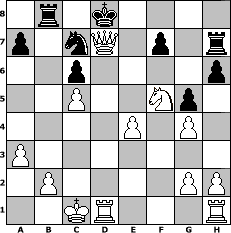 Partie-Notation im PGN-Format [Event "?"] [Site "www.mySchach.de"] [Date "2025.08.02"] [Round "?"] [White "spiderman"] [Black "Achimkogge"] [ECO "A00"] [WhitemyELO "1753"] [BlackmyELO "1212"] [Result "1-0"] [TimeControl "10/3456000"] [WhiteDays "25"] [BlackDays "39"] [MySchachNr "133561"] 1. g4 d5 2. e3 e5 3. Nc3 c6 4. d4 e4 5. Be2 g5 6. f3 Bb4 7. fxe4 dxe4 8. Bd2 Nf6 9. Nxe4 Bxd2+ 10. Nxd2 Be6 11. c4 Na6 12. Nh3 h6 13. Nf2 Nb4 14. a3 Na6 15. c5 Qd5 16. Nc4 Ne4 17. Nxe4 Ke7 18. Ncd6 Rab8 19. Bc4 Qxc4 20. Nxc4 Bxc4 21. Nd6 Bd5 22. e4 Be6 23. d5 Bd7 24. dxc6 bxc6 25. Nf5+ Kd8 26. Qd4 Rh7 27. O-O-O Nc7 28. Qxd7# 1-0 Stellungs-Notation im FEN-Format 1r1k4/p1nQ1p1r/2p4p/2P2Np1/4P1P1/P7/1P4PP/2KR3R - - - 0 28 Geschlagene Figuren Weiss: Geschlagene Figuren Schwarz: Klicken Sie auf eine geschlagene Figur um den gewünschten Zug darzustellen!