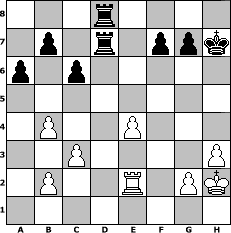 Partie-Notation im PGN-Format [Event "Summer Games 2021"] [Site "www.mySchach.de"] [Date "2021.08.01"] [Round "1"] [White "borsti"] [Black "hsvler"] [ECO "C24"] [WhitemyELO "1280"] [BlackmyELO "1529"] [Result "0-1"] [TimeControl "10/86400"] [WhiteDays "00"] [BlackDays "01"] [MySchachNr "122679"] 1. e4 e5 2. Bc4 Nf6 3. d3 Be7 4. Nc3 O-O 5. Nf3 d6 6. h3 Nc6 7. O-O Na5 8. Bb3 Nxb3 9. axb3 c6 10. Be3 a6 11. b4 Be6 12. Ng5 Bd7 13. Na4 h6 14. Nf3 Re8 15. Nb6 Rb8 16. c3 Be6 17. d4 Nd7 18. Nxd7 Qxd7 19. Qd2 Bf6 20. dxe5 dxe5 21. Rfd1 Qe7 22. Bb6 Bb3 23. Re1 Qe6 24. Rad1 Bxd1 25. Qxd1 Bd8 26. Ba7 Rc8 27. Bc5 Bc7 28. Nh4 Rcd8 29. Qe2 Qd7 30. Nf5 Qd2 31. Nxh6+ Qxh6 32. Qg4 Re6 33. Qg3 Rg6 34. Qe3 Qxe3 35. Bxe3 Rgd6 36. Kh2 Kh7 37. f4 exf4 38. Bxf4 R6d7 39. Bxc7 Rxc7 40. Re2 Rcd7 0-1 Stellungs-Notation im FEN-Format 3r4/1p1r1ppk/p1p5/8/1P2P3/2P4P/1P2R1PK/8 - - - 2 41 Geschlagene Figuren Weiss: Geschlagene Figuren Schwarz: Klicken Sie auf eine geschlagene Figur um den gewünschten Zug darzustellen!
