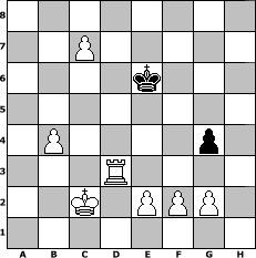 Partie-Notation im PGN-Format [Event "Open"] [Site "www.mySchach.de"] [Date "2016.01.17"] [Round "1"] [White "Joschi"] [Black "augustus"] [ECO "C01"] [WhitemyELO "1526"] [BlackmyELO "1265"] [Result "1-0"] [TimeControl "10/1728000"] [WhiteDays "120"] [BlackDays "105"] [MySchachNr "102147"] 1. e4 e6 2. d4 Bb4+ 3. Bd2 Bxd2+ 4. Qxd2 a6 5. Nc3 Nf6 6. Nf3 b5 7. Bd3 Bb7 8. Qe3 Ng4 9. Qf4 Nf6 10. O-O-O d5 11. exd5 Nxd5 12. Nxd5 Bxd5 13. Be4 Bxe4 14. Qxe4 Nd7 15. Rhe1 O-O 16. Kb1 Nf6 17. Qf4 Nd5 18. Qg3 Qd7 19. Ng5 Nf6 20. Re3 c5 21. Red3 c4 22. Rf3 Rae8 23. Rxf6 e5 24. Rf3 h6 25. Nh3 f6 26. c3 g5 27. Ng1 f5 28. h3 f4 29. Qg4 Qe7 30. dxe5 Qxe5 31. h4 Rf5 32. hxg5 Qe4+ 33. Kc1 Rxg5 34. Qxf4 Qg6 35. Rg3 Kg7 36. Rxg5 hxg5 37. Qd4+ Kg8 38. Qd5+ Kg7 39. Qd2 a5 40. Nf3 Re7 41. Nd4 Rd7 42. Nf5+ Qxf5 43. Qxd7+ Qxd7 44. Rxd7+ Kg6 45. Rd5 b4 46. Rxa5 b3 47. axb3 cxb3 48. Rb5 Kh5 49. Rxb3 g4 50. c4 Kg5 51. c5 Kf6 52. Rd3 Ke5 53. b4 Ke4 54. Kc2 Ke5 55. c6 Ke6 56. c7 1-0 Stellungs-Notation im FEN-Format 8/2P5/4k3/8/1P4p1/3R4/2K1PPP1/8 - - - 0 56 Geschlagene Figuren Weiss: Geschlagene Figuren Schwarz: Klicken Sie auf eine geschlagene Figur um den gewünschten Zug darzustellen!