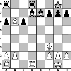 Partie eroeffnet am 01.12.2006, 00:01 Uhr und beendet am 27.12.2006, 18:46 Uhr Spieler weiss: Phantasos Spieler schwarz: Chelly Phantasos hat die Partie gewonnen! | |