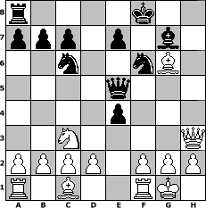 Partie-Notation im PGN-Format [Event "Mini-Sommerturnier"] [Site "www.mySchach.de"] [Date "2004.09.07"] [Round "1"] [White "Jens1943"] [Black "EduardM"] [ECO "A80"] [WhitemyELO "1500"] [BlackmyELO "967"] [Result "1-0"] [TimeControl "10/2592000"] [WhiteDays "60"] [BlackDays "00"] [MySchachNr "6627"] 1. d4 f5 2. Nf3 d5 3. Ne5 Be6 4. e4 dxe4 5. Qh5+ g6 6. Qh3 Nf6 7. Nxg6 Bf7 8. Nxh8 Qd7 9. Nxf7 Kxf7 10. Bc4+ Ke8 11. O-O Qxd4 12. Be6 Qe5 13. Bxf5 Nc6 14. Bxh7 Bg7 15. Bg6+ Kf8 16. Nc3 1-0 Stellungs-Notation im FEN-Format r4k2/ppp1p1b1/2n2nB1/4q3/4p3/2N4Q/PPPP1PPP/R1B2RK1 - - - 4 16 Geschlagene Figuren Weiss: Geschlagene Figuren Schwarz: Klicken Sie auf eine geschlagene Figur um den gewünschten Zug darzustellen!