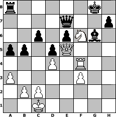 Partie-Notation im PGN-Format [Event "Gothic 100"] [Site "www.mySchach.de"] [Date "2005.08.23"] [Round "1"] [White "bane"] [Black "Knight"] [ECO "C01"] [WhitemyELO "1874"] [BlackmyELO "1525"] [Result "1-0"] [TimeControl "10/2592000"] [WhiteDays "120"] [BlackDays "120"] [MySchachNr "16613"] 1. e4 e6 2. d4 d5 3. Be3 Nf6 4. e5 Nfd7 5. Nc3 Bb4 6. Nge2 Nc6 7. a3 Bxc3+ 8. Nxc3 O-O 9. Qg4 Ne7 10. Bh6 Ng6 11. Bg5 f6 12. exf6 Nxf6 13. Qg3 c6 14. O-O-O Qb6 15. Bd3 Nh5 16. Qd6 Nhf4 17. Bxf4 Nxf4 18. Qe5 Nxd3+ 19. Rxd3 Rxf2 20. Rf3 Rxf3 21. gxf3 Bd7 22. Rg1 g6 23. h4 Be8 24. h5 Qd8 25. Ne2 a5 26. hxg6 Bxg6 27. Nf4 Qe8 28. Nh5 Qf7 29. Nf6+ Kf8 30. Rg4 b5 31. Qd6+ Kg7 32. Nh5+ Kh8 33. Qe5+ Kg8 34. Rf4 Qe7 35. Nf6+ 1-0 Stellungs-Notation im FEN-Format r5k1/4q2p/2p1pNb1/pp1pQ3/3P1R2/P4P2/1PP5/2K5 - - - 9 35 Geschlagene Figuren Weiss: ![]() ![]() ![]() ![]() ![]() ![]() ![]() ![]() ![]() ![]() ![]() ![]() ![]() ![]() ![]() Geschlagene Figuren Schwarz: ![]() ![]() ![]() ![]() ![]() ![]() ![]() ![]() ![]() ![]() ![]() ![]() ![]() ![]() ![]() Klicken Sie auf eine geschlagene Figur um den gewünschten Zug darzustellen!