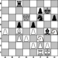 Partie-Notation im PGN-Format [Event "Piano Forte, Klappe zu"] [Site "www.mySchach.de"] [Date "2005.11.18"] [Round "1"] [White "Seneca"] [Black "crca108"] [ECO "C53"] [WhitemyELO "1677"] [BlackmyELO "1491"] [Result "1-0"] [TimeControl "10/864000"] [WhiteDays "10"] [BlackDays "10"] [MySchachNr "19834"] 1. e4 e5 2. Nf3 Nc6 3. Bc4 Bc5 4. c3 Qe7 5. b4 Bb6 6. O-O Nf6 7. a4 a5 8. b5 Na7 9. d3 h6 10. Nbd2 c6 11. Ba3 d6 12. Rb1 Bg4 13. h3 Bh5 14. Qe1 g5 15. bxc6 Bc5 16. Bxc5 dxc5 17. Rxb7 Qd6 18. c7 Nc8 19. Qb1 O-O 20. Qb5 g4 21. hxg4 Bxg4 22. Nh4 Na7 23. Qxa5 Rfc8 24. Rxa7 Rxa7 25. Qxa7 Rxc7 26. Qb8+ Kg7 27. Ndf3 Rc8 28. Qxd6 1-0 Stellungs-Notation im FEN-Format 2r5/5pk1/3Q1n1p/2p1p3/P1B1P1bN/2PP1N2/4PPP1/5RK1 - - - 0 28 Geschlagene Figuren Weiss: Geschlagene Figuren Schwarz: Klicken Sie auf eine geschlagene Figur um den gewünschten Zug darzustellen!