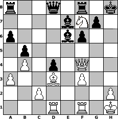 Partie-Notation im PGN-Format [Event "UNOFFICIAL WORLD CHAMPIONSHIP TOURNEY"] [Site "www.mySchach.de"] [Date "2019.04.27"] [Round "1"] [White "muetoe"] [Black "alibengali"] [ECO "B20"] [WhitemyELO "1883"] [BlackmyELO "1678"] [Result "1-0"] [TimeControl "10/3456000"] [WhiteDays "36"] [BlackDays "35"] [MySchachNr "114857"] 1. e4 c5 2. d4 cxd4 3. Qxd4 Nf6 4. Nc3 Nc6 5. Qd3 e6 6. Bg5 h6 7. Bh4 Be7 8. f4 O-O 9. Bxf6 Bxf6 10. e5 Nb4 11. Qd2 Be7 12. Nf3 b6 13. a3 Nc6 14. Bd3 a6 15. Rd1 d5 16. Ne2 Bb7 17. O-O Bc5+ 18. Kh1 b5 19. Ng3 d4 20. f5 f6 21. fxe6 Nxe5 22. Nf5 Bd5 23. b4 Nxf3 24. gxf3 Be7 25. Qf4 Bxe6 26. Nxh6+ Kh8 27. Nf7+ 1-0 Stellungs-Notation im FEN-Format r2q1r1k/4bNp1/p3bp2/1p6/1P1p1Q2/P2B1P2/2P4P/3R1R1K - - - 2 27 Geschlagene Figuren Weiss: Geschlagene Figuren Schwarz: Klicken Sie auf eine geschlagene Figur um den gewünschten Zug darzustellen!