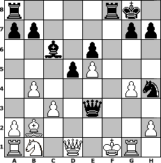Partie-Notation im PGN-Format [Event "?"] [Site "www.mySchach.de"] [Date "2021.09.03"] [Round "?"] [White "lotchi"] [Black "nyffhans"] [ECO "D00"] [WhitemyELO "1303"] [BlackmyELO "2043"] [Result "0-1"] [TimeControl "10/2592000"] [WhiteDays "60"] [BlackDays "56"] [MySchachNr "122882"] 1. d4 d5 2. e4 e6 3. e5 c5 4. dxc5 Bxc5 5. c3 Nc6 6. f4 f6 7. Bb5 Bd7 8. Bxc6 Bxc6 9. b4 Bxg1 10. Rxg1 Nh6 11. g3 O-O 12. Bb2 fxe5 13. fxe5 Nf5 14. g4 Qh4+ 15. Kd2 Qg5+ 16. Ke1 Qe3+ 17. Kf1 Nh4+ 0-1 Stellungs-Notation im FEN-Format r4rk1/pp4pp/2b1p3/3pP3/1P4Pn/2P1q3/PB5P/RN1Q1KR1 - - - 7 18 Geschlagene Figuren Weiss: Geschlagene Figuren Schwarz: Klicken Sie auf eine geschlagene Figur um den gewünschten Zug darzustellen!