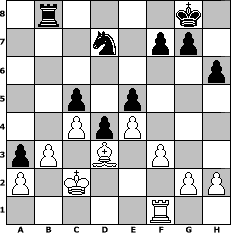 Partie-Notation im PGN-Format [Event "Jahreswechsel"] [Site "www.mySchach.de"] [Date "2009.12.30"] [Round "2"] [White "frankto"] [Black "neve"] [ECO "B94"] [WhitemyELO "1693"] [BlackmyELO "1429"] [Result "1/2-1/2"] [TimeControl "10/1728000"] [WhiteDays "80"] [BlackDays "80"] [MySchachNr "61948"] 1. e4 c5 2. Nf3 d6 3. d4 cxd4 4. Nxd4 Nf6 5. Nc3 a6 6. Bg5 e5 7. Nf3 Be6 8. Bxf6 Qxf6 9. Nd5 Qd8 10. Qd2 Nd7 11. Be2 Be7 12. O-O-O Bxd5 13. Qxd5 Qb6 14. Rhf1 Nf6 15. Qc4 h6 16. Qa4+ Qc6 17. Qxc6+ bxc6 18. Nd2 d5 19. Rfe1 d4 20. f3 Bb4 21. Rg1 Bxd2+ 22. Rxd2 Nd7 23. Rd3 O-O 24. Ra3 a5 25. Rd1 Rfb8 26. Rad3 Rb6 27. Rb3 Rab8 28. Rxb6 Nxb6 29. b3 c5 30. c4 a4 31. Kc2 a3 32. Bd3 Nd7 33. Rf1 1/2-1/2 Stellungs-Notation im FEN-Format 1r4k1/3n1pp1/7p/2p1p3/2PpP3/pP1B1P2/P1K3PP/5R2 - - - 3 33 Geschlagene Figuren Weiss: Geschlagene Figuren Schwarz: Klicken Sie auf eine geschlagene Figur um den gewünschten Zug darzustellen!