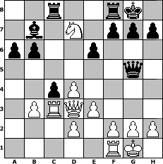 Partie-Notation im PGN-Format [Event "Das Colle System (mit 5.c3)"] [Site "www.mySchach.de"] [Date "2008.10.21"] [Round "1"] [White "Andylein1989"] [Black "Steffi"] [ECO "D05"] [WhitemyELO "1725"] [BlackmyELO "1494"] [Result "0-1"] [TimeControl "10/2592000"] [WhiteDays "90"] [BlackDays "50"] [MySchachNr "48959"] 1. d4 d5 2. Nf3 Nf6 3. e3 e6 4. Bd3 c5 5. c3 c4 6. Bc2 Nc6 7. O-O Be7 8. b3 cxb3 9. Bxb3 O-O 10. Ba3 Bxa3 11. Nxa3 a6 12. Rb1 Ne4 13. Rc1 Na5 14. c4 Nxb3 15. axb3 Qe7 16. Nb1 b6 17. Nc3 Nxc3 18. Rxc3 Bb7 19. Ne5 Rac8 20. Qd3 Qg5 21. Nd7 dxc4 0-1 Stellungs-Notation im FEN-Format 2r2rk1/1b1N1ppp/pp2p3/6q1/2pP4/1PRQP3/3P1PPP/5RK1 - - - 0 22 Geschlagene Figuren Weiss: Geschlagene Figuren Schwarz: Klicken Sie auf eine geschlagene Figur um den gewünschten Zug darzustellen!