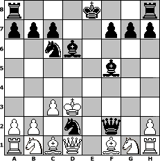 Partie-Notation im PGN-Format [Event "Osterturnier"] [Site "www.mySchach.de"] [Date "2009.04.17"] [Round "1"] [White "dragon46"] [Black "alpacino"] [ECO "C21"] [WhitemyELO "1500"] [BlackmyELO "1345"] [Result "0-1"] [TimeControl "10/2592000"] [WhiteDays "60"] [BlackDays "58"] [MySchachNr "54955"] 1. e4 e5 2. d4 Nf6 3. f3 d6 4. f4 Be6 5. f5 Nxe4 6. c3 Bxf5 7. dxe5 Nc6 8. exd6 Bxd6 9. g4 Qh4+ 10. Ke2 Qxg4+ 11. Ke1 Qh4+ 12. Ke2 Qf2+ 13. Kd3 Nd2# 0-1 Stellungs-Notation im FEN-Format r3k2r/ppp2ppp/2nb4/5b2/8/2PK4/PP1n1q1P/RNBQ1BNR - kq - 6 14 Geschlagene Figuren Weiss: Geschlagene Figuren Schwarz: Klicken Sie auf eine geschlagene Figur um den gewünschten Zug darzustellen!