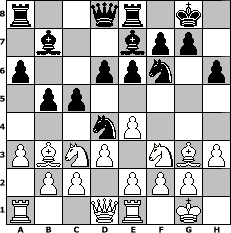 Partie-Notation im PGN-Format [Event "?"] [Site "www.mySchach.de"] [Date "2025.11.01"] [Round "?"] [White "skuehnel"] [Black "alibengali"] [ECO "B50"] [WhitemyELO "1365"] [BlackmyELO "1715"] [Result "*"] [TimeControl "10/2592000"] [WhiteDays "45"] [BlackDays "50"] [MySchachNr "133862"] 1. e4 c5 2. Nf3 d6 3. Nc3 Nf6 4. Bc4 e6 5. d3 Nc6 6. O-O a6 7. h3 Be7 8. Bg5 h6 9. Bh4 b5 10. Bb3 O-O 11. Re1 Bb7 12. a3 Re8 13. Bg3 Nd4 * Stellungs-Notation im FEN-Format r2qr1k1/1b2bpp1/p2ppn1p/1pp5/3nP3/PBNP1NBP/1PP1PPP1/R2QR1K1 w - - 3 14 Geschlagene Figuren Weiss: Geschlagene Figuren Schwarz: Klicken Sie auf eine geschlagene Figur um den gewünschten Zug darzustellen!