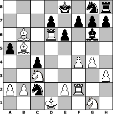 Partie-Notation im PGN-Format [Event "Opera "] [Site "www.mySchach.de"] [Date "2025.09.04"] [Round "1"] [White "Haneken"] [Black "Hobbykegler"] [ECO "B20"] [WhitemyELO "1122"] [BlackmyELO "1012"] [Result "1-0"] [TimeControl "10/2592000"] [WhiteDays "88"] [BlackDays "62"] [MySchachNr "133644"] 1. e4 c5 2. d4 b6 3. d5 Bb7 4. f4 e6 5. d6 Bxe4 6. Nc3 Bf5 7. g4 Bg6 8. Qf3 Bxc2 9. Qxa8 a5 10. h3 Nc6 11. Qxd8+ Kxd8 12. Rh2 Nd4 13. Be3 Nc6 14. Rc1 Bg6 15. Bb5 Bxd6 16. Rf2 c4 17. Bxb6+ Ke8 18. Rd1 Nb4 19. Rxd6 Nc2+ 20. Kd1 1-0 Stellungs-Notation im FEN-Format 4k1nr/3p1ppp/1B1Rp1b1/pB6/2p2PP1/2N4P/PPn1PR2/3K2N1 - - - 2 20 Geschlagene Figuren Weiss: Geschlagene Figuren Schwarz: Klicken Sie auf eine geschlagene Figur um den gewünschten Zug darzustellen!