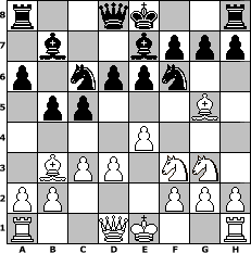 Partie-Notation im PGN-Format [Event "Sommer 2018"] [Site "www.mySchach.de"] [Date "2018.07.18"] [Round "1"] [White "Andylein1989"] [Black "Robert"] [ECO "B02"] [WhitemyELO "1682"] [BlackmyELO "1572"] [Result "1-0"] [TimeControl "10/1728000"] [WhiteDays "24"] [BlackDays "00"] [MySchachNr "112649"] 1. e4 Nf6 2. Nc3 d6 3. Bc4 c5 4. d3 e6 5. Nf3 a6 6. Ne2 b5 7. Bb3 Be7 8. c3 Nc6 9. Ng3 Bb7 10. Bg5 1-0 Stellungs-Notation im FEN-Format r2qk2r/1b2bppp/p1nppn2/1pp3B1/4P3/1BPP1NN1/PP3PPP/R2QK2R - KQkq - 4 10 Geschlagene Figuren Weiss: Geschlagene Figuren Schwarz: Klicken Sie auf eine geschlagene Figur um den gewünschten Zug darzustellen!