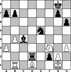 Partie-Notation im PGN-Format [Event "Michal Tal zum 80ten"] [Site "www.mySchach.de"] [Date "2016.04.07"] [Round "1"] [White "Joschi"] [Black "Helmut48"] [ECO "B58"] [WhitemyELO "1507"] [BlackmyELO "2003"] [Result "0-1"] [TimeControl "10/2592000"] [WhiteDays "90"] [BlackDays "86"] [MySchachNr "103194"] 1. e4 c5 2. Nf3 d6 3. d4 cxd4 4. Nxd4 Nf6 5. Nc3 Nc6 6. Be2 e5 7. Nf3 h6 8. O-O Be7 9. h3 Be6 10. Re1 d5 11. exd5 Nxd5 12. Nxd5 Qxd5 13. c4 Qxd1 14. Rxd1 O-O 15. Be3 f5 16. a3 Rad8 17. b4 f4 18. Rxd8 Rxd8 19. Bc1 e4 20. Ne1 Bf6 21. Rb1 Be5 22. Bb2 Rd2 23. Bxe5 Nxe5 24. Kf1 f3 25. Bd1 Bxc4+ 26. Kg1 e3 27. Nxf3 exf2+ 0-1 Stellungs-Notation im FEN-Format 6k1/pp4p1/7p/4n3/1Pb5/P4N1P/3r1pP1/1R1B2K1 - - - 0 28 Geschlagene Figuren Weiss: ![]() ![]() ![]() ![]() ![]() ![]() ![]() ![]() ![]() ![]() ![]() ![]() ![]() ![]() ![]() Geschlagene Figuren Schwarz: ![]() ![]() ![]() ![]() ![]() ![]() ![]() ![]() ![]() ![]() ![]() ![]() ![]() ![]() ![]() Klicken Sie auf eine geschlagene Figur um den gewünschten Zug darzustellen!