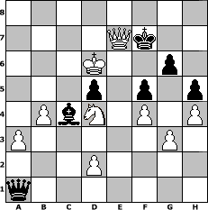Partie-Notation im PGN-Format [Event "Ab in den Herbst"] [Site "www.mySchach.de"] [Date "2014.09.23"] [Round "1"] [White "FrankB"] [Black "alibengali"] [ECO "A48"] [WhitemyELO "1730"] [BlackmyELO "1600"] [Result "1-0"] [TimeControl "10/864000"] [WhiteDays "10"] [BlackDays "07"] [MySchachNr "96033"] 1. d4 Nf6 2. Nf3 g6 3. e3 Bg7 4. c4 O-O 5. Nc3 d6 6. Bd3 Nbd7 7. O-O Re8 8. h3 e5 9. Qc2 exd4 10. exd4 b6 11. b3 Bb7 12. d5 Nc5 13. Bb2 Nxd3 14. Qxd3 Qd7 15. Rae1 Rxe1 16. Rxe1 Re8 17. Re2 a6 18. Nd1 Rxe2 19. Qxe2 b5 20. Nc3 c6 21. dxc6 Bxc6 22. cxb5 axb5 23. b4 Nd5 24. Nxd5 Bxb2 25. Qxb2 Bxd5 26. Nd4 Bc4 27. a3 f6 28. Qc3 d5 29. Qe3 f5 30. g3 Kg7 31. Qe5+ Kg8 32. Kg2 Qf7 33. h4 h5 34. Kf3 Qa7 35. Nxb5 Qd7 36. Nd4 Qa4 37. Qe3 Qd1+ 38. Kf4 Qg4+ 39. Ke5 Kf7 40. f4 Qd1 41. Kd6 Qa1 42. Qe7+ 1-0 Stellungs-Notation im FEN-Format 8/4Qk2/3K2p1/3p1p1p/1PbN1P1P/P5P1/3P4/q7 - - - 4 42 Geschlagene Figuren Weiss: ![]() ![]() ![]() ![]() ![]() ![]() ![]() ![]() ![]() ![]() ![]() ![]() ![]() ![]() ![]() Geschlagene Figuren Schwarz: ![]() ![]() ![]() ![]() ![]() ![]() ![]() ![]() ![]() ![]() ![]() ![]() ![]() ![]() ![]() Klicken Sie auf eine geschlagene Figur um den gewünschten Zug darzustellen!