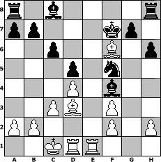 Partie-Notation im PGN-Format [Event "?"] [Site "www.mySchach.de"] [Date "2025.11.01"] [Round "?"] [White "skuehnel"] [Black "deepsabel"] [ECO "C63"] [WhitemyELO "1365"] [BlackmyELO "1802"] [Result "0-1"] [TimeControl "10/2592000"] [WhiteDays "50"] [BlackDays "57"] [MySchachNr "133785"] 1. e4 e5 2. Nf3 Nc6 3. Bb5 f5 4. exf5 e4 5. Qe2 Qe7 6. Nc3 exf3 7. gxf3 Qxe2+ 8. Nxe2 Nf6 9. d4 Ne7 10. Bg5 Nxf5 11. O-O-O c6 12. Bd3 d5 13. Nf4 Bd6 14. Rhe1+ Kf7 15. c3 h6 16. Bxf6 Bxf4+ 0-1 Stellungs-Notation im FEN-Format r1b4r/pp3kp1/2p2B1p/3p1n2/3P1b2/2PB1P2/PP3P1P/2KRR3 - - - 0 17 Geschlagene Figuren Weiss: Geschlagene Figuren Schwarz: Klicken Sie auf eine geschlagene Figur um den gewünschten Zug darzustellen!