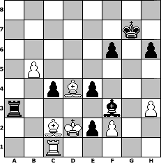 Partie-Notation im PGN-Format [Event "Schachturnier Drei"] [Site "www.mySchach.de"] [Date "2016.02.24"] [Round "1"] [White "kalle"] [Black "reisinger"] [ECO "C07"] [WhitemyELO "1665"] [BlackmyELO "1536"] [Result "1-0"] [TimeControl "10/1728000"] [WhiteDays "10"] [BlackDays "20"] [MySchachNr "102711"] 1. e4 e6 2. d4 d5 3. Nd2 c5 4. Ndf3 dxe4 5. Ne5 a6 6. Be3 cxd4 7. Bxd4 Nf6 8. Bc4 b5 9. Bb3 Bb7 10. Ne2 Nc6 11. Nxc6 Bxc6 12. O-O Be7 13. c3 Qc7 14. Ng3 Rd8 15. Qe2 O-O 16. Bc2 e5 17. Be3 h6 18. a4 Qb7 19. Rfe1 Nh7 20. axb5 axb5 21. Ra7 Qxa7 22. Bxa7 f5 23. b4 Bg5 24. Bb3+ Kh8 25. Bc5 Rd2 26. Qxd2 Bxd2 27. Rd1 f4 28. Rxd2 Ra8 29. Nf5 Nf6 30. Ne7 Be8 31. Kf1 f3 32. Rd1 Ng4 33. h3 fxg2+ 34. Kxg2 Nf6 35. Nd5 Bc6 36. Nxf6 e3+ 37. Kf1 Bf3 38. Rc1 e2+ 39. Ke1 gxf6 40. c4 Ra3 41. Bc2 bxc4 42. Kd2 e4 43. Bd4 Kg7 44. b5 1-0 Stellungs-Notation im FEN-Format 8/6k1/5p1p/1P6/2pBp3/r4b1P/2BKpP2/2R5 - - - 0 44 Geschlagene Figuren Weiss: Geschlagene Figuren Schwarz: Klicken Sie auf eine geschlagene Figur um den gewünschten Zug darzustellen!