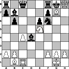 Partie-Notation im PGN-Format [Event "Gegen die grauen Herbsttage"] [Site "www.mySchach.de"] [Date "2017.11.11"] [Round "1"] [White "atlantis"] [Black "Joschi"] [ECO "B12"] [WhitemyELO "1888"] [BlackmyELO "1563"] [Result "1-0"] [TimeControl "10/1728000"] [WhiteDays "42"] [BlackDays "60"] [MySchachNr "110233"] 1. e4 c6 2. d4 d5 3. Nd2 dxe4 4. Nxe4 Nd7 5. Bc4 Ngf6 6. Ng5 e6 7. Qe2 Nb6 8. Bd3 Be7 9. N1f3 h6 10. Ne4 O-O 11. O-O Nbd5 12. Nxf6+ Nxf6 13. Rd1 Qc7 14. c4 b6 15. Ne5 Bb7 16. Bf4 Qd8 17. Rac1 Kh8 18. Qe3 c5 19. Bb1 cxd4 20. Rxd4 Qc8 21. Bxh6 Bc5 22. Bxg7+ Kg8 23. Qh6 Bxd4 24. Qh8# 1-0 Stellungs-Notation im FEN-Format r1q2rkQ/pb3pB1/1p2pn2/4N3/2Pb4/8/PP3PPP/1BR3K1 - - - 1 24 Geschlagene Figuren Weiss: Geschlagene Figuren Schwarz: Klicken Sie auf eine geschlagene Figur um den gewünschten Zug darzustellen!