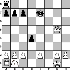 Partie-Notation im PGN-Format [Event "August ohne Regen"] [Site "www.mySchach.de"] [Date "2014.08.20"] [Round "1"] [White "Joschi"] [Black "lotchi"] [ECO "C67"] [WhitemyELO "1628"] [BlackmyELO "1319"] [Result "1-0"] [TimeControl "10/3456000"] [WhiteDays "118"] [BlackDays "057"] [MySchachNr "95485"] 1. e4 e5 2. Nf3 Nc6 3. Bb5 Nf6 4. O-O Nxe4 5. d4 f5 6. Bxc6 dxc6 7. Nxe5 h5 8. Re1 c5 9. f3 cxd4 10. fxe4 fxe4 11. Rxe4 Be6 12. Ng6 Qd5 13. Rxe6+ Qxe6 14. Nxh8 Qg8 15. Qxh5+ g6 16. Nxg6 Qe6 17. Nxf8+ Kxf8 18. Bh6+ Ke7 19. Qh4+ Qf6 20. Bg5 Qxg5 21. Qxg5+ 1-0 Stellungs-Notation im FEN-Format r7/ppp1k3/8/6Q1/3p4/8/PPP1P1PP/RN4K1 - - - 0 21 Geschlagene Figuren Weiss: ![]() ![]() ![]() ![]() ![]() ![]() ![]() ![]() ![]() ![]() ![]() ![]() ![]() ![]() ![]() Geschlagene Figuren Schwarz: ![]() ![]() ![]() ![]() ![]() ![]() ![]() ![]() ![]() ![]() ![]() ![]() ![]() ![]() ![]() Klicken Sie auf eine geschlagene Figur um den gewünschten Zug darzustellen!