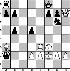 Partie-Notation im PGN-Format [Event "1. HSF-Clubmeisterschaft, Vorrunde A"] [Site "www.mySchach.de"] [Date "2010.09.01"] [Round "1"] [White "alpacino"] [Black "leitsgeheier"] [ECO "C44"] [WhitemyELO "1310"] [BlackmyELO "1638"] [Result "1-0"] [TimeControl "10/2592000"] [WhiteDays "27"] [BlackDays "14"] [MySchachNr "67974"] 1. e4 e5 2. Nf3 Nc6 3. c3 Nf6 4. Bd3 Bc5 5. O-O d6 6. b4 Bb6 7. b5 Ne7 8. Bc4 Nxe4 9. Bd3 Nf6 10. Re1 O-O 11. c4 Be6 12. Nc3 c6 13. Ne4 Nxe4 14. Bxe4 Bxc4 15. Bxh7+ Kxh7 16. Qc2+ Ng6 17. Qxc4 d5 18. Qg4 cxb5 19. Qh5+ Kg8 20. Ng5 Re8 21. Qh7+ Kf8 22. Ba3+ Re7 23. Rxe5 Bxf2+ 24. Kxf2 Qb6+ 25. Re3 Qf6+ 26. Nf3 Qxa1 27. Rxe7 Qxa2 28. Re3+ 1-0 Stellungs-Notation im FEN-Format r4k2/pp3ppQ/6n1/1p1p4/8/B3RN2/q2PPKPP/8 - - - 1 28 Geschlagene Figuren Weiss: ![]() ![]() ![]() ![]() ![]() ![]() ![]() ![]() ![]() ![]() ![]() ![]() ![]() ![]() ![]() Geschlagene Figuren Schwarz: ![]() ![]() ![]() ![]() ![]() ![]() ![]() ![]() ![]() ![]() ![]() ![]() ![]() ![]() ![]() Klicken Sie auf eine geschlagene Figur um den gewünschten Zug darzustellen!