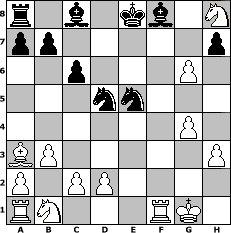 Partie-Notation im PGN-Format [Event "MN-2012-1"] [Site "www.mySchach.de"] [Date "2012.07.24"] [Round "1"] [White "HenrySchinasky"] [Black "BobbyF4"] [ECO "C40"] [WhitemyELO "2105"] [BlackmyELO "1538"] [Result "1-0"] [TimeControl "10/2592000"] [WhiteDays "30"] [BlackDays "23"] [MySchachNr "82911"] 1. e4 e5 2. Nf3 f5 3. exf5 e4 4. Ne5 Nf6 5. Be2 d6 6. Bh5+ Ke7 7. Nf7 Qe8 8. Nxh8 Qxh5 9. Qxh5 Nxh5 10. h3 c6 11. g4 Nf6 12. f3 d5 13. fxe4 Nbd7 14. exd5 Nxd5 15. b3 Ne5 16. O-O g6 17. Ba3+ Ke8 18. fxg6 1-0 Stellungs-Notation im FEN-Format r1b1kb1N/pp5p/2p3P1/3nn3/6P1/BP5P/P1PP4/RN3RK1 - - - 0 18 Geschlagene Figuren Weiss: Geschlagene Figuren Schwarz: Klicken Sie auf eine geschlagene Figur um den gewünschten Zug darzustellen!