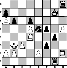 | Partie-Notation im PGN-Format [Event "1. e4 c5 2. Nf3 Nc6"] [Site "www.mySchach.de"] [Date "2009.10.13"] [Round "2"] [White "rakl"] [Black "wilfried"] [ECO "B30"] [WhitemyELO "1898"] [BlackmyELO "1782"] [Result "0-1"] [TimeControl "10/1728000"] [WhiteDays "18"] [BlackDays "20"] [MySchachNr "59755"] 1. e4 c5 2. Nf3 Nc6 3. Nc3 d6 4. g3 Nf6 5. Bg2 g6 6. d4 cxd4 7. Nxd4 Nxd4 8. Qxd4 Bg7 9. Bg5 O-O 10. Qd2 Be6 11. O-O-O Ng4 12. Nd5 Bxd5 13. exd5 Qb6 14. c3 Qxf2 15. Rhe1 Bf6 16. Bxf6 Qxd2+ 17. Rxd2 exf6 18. h3 Ne5 19. g4 Kg7 20. Be4 Rh8 21. Bg2 h5 22. gxh5 Rxh5 23. Rd4 f5 24. Rf1 Rg5 25. Rf2 f4 26. Kd1 Kg8 27. Bf1 f3 28. Kc2 Rg1 29. Rb4 b6 30. Re4 Kg7 31. Kb3 f5 32. Rf4 Rf8 33. h4 Rg4 34. Rd4 Rh8 35. Rh2 g5 36. h5 Rg1 37. Ba6 g4 0-1 Stellungs-Notation im FEN-Format 7r/p5k1/Bp1p4/3Pnp1P/3R2p1/1KP2p2/PP2P2R/6r1 - - - 0 38 Geschlagene Figuren Weiss:                              Geschlagene Figuren Schwarz:                               Klicken Sie auf eine geschlagene Figur um den gewünschten Zug darzustellen!