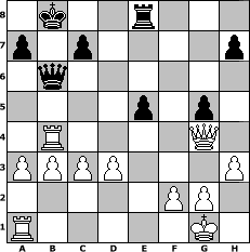 Partie-Notation im PGN-Format [Event "Einfach nur Schach 8"] [Site "www.mySchach.de"] [Date "2025.11.14"] [Round "1"] [White "faustballer"] [Black "Lohl"] [ECO "B01"] [WhitemyELO "1457"] [BlackmyELO "1283"] [Result "1-0"] [TimeControl "10/864000"] [WhiteDays "40"] [BlackDays "40"] [MySchachNr "133936"] 1. e4 d5 2. exd5 Nf6 3. Nc3 Nxd5 4. Nxd5 Qxd5 5. h3 Nc6 6. Nf3 Be6 7. b3 O-O-O 8. Bb2 Nb4 9. Be2 Bf5 10. d3 e5 11. Bxe5 f6 12. Bc3 Be7 13. O-O Kb8 14. a3 Nc6 15. Nh4 Bc8 16. Re1 g5 17. Bf3 Qc5 18. Bb4 Qd4 19. Nf5 Qb6 20. Nxe7 Ne5 21. Nxc8 Kxc8 22. Bc3 Rhe8 23. Bxe5 fxe5 24. Re4 Rd4 25. c3 Rdd8 26. Rb4 Qc5 27. Bxb7+ Kd7 28. Rc4 Qb6 29. Bc6+ Kc8 30. Bxe8 Rxe8 31. Qg4+ Kb8 32. Rb4 1-0 Stellungs-Notation im FEN-Format 1k2r3/p1p4p/1q6/4p1p1/1R4Q1/PPPP3P/5PP1/R5K1 - - - 3 32 Geschlagene Figuren Weiss: Geschlagene Figuren Schwarz: Klicken Sie auf eine geschlagene Figur um den gewünschten Zug darzustellen!