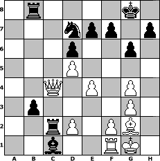 Partie-Notation im PGN-Format [Event "RDK-Turnier 2009"] [Site "www.mySchach.de"] [Date "2009.04.15"] [Round "1"] [White "brucybabe"] [Black "PeterLoskarn"] [ECO "A56"] [WhitemyELO "1597"] [BlackmyELO "2097"] [Result "0-1"] [TimeControl "10/1728000"] [WhiteDays "32"] [BlackDays "51"] [MySchachNr "54846"] 1. d4 Nf6 2. c4 c5 3. d5 g6 4. Nc3 Bg7 5. g3 d6 6. Bg2 a6 7. e4 b5 8. cxb5 axb5 9. Nxb5 O-O 10. Ne2 Ba6 11. Nbc3 Nbd7 12. O-O Qb6 13. Qc2 Rfb8 14. Rb1 Ng4 15. h3 Bxc3 16. hxg4 Bxe2 17. Qxe2 Rxa2 18. Qc4 Qb3 19. Qe2 c4 20. Bh6 Bxb2 21. Bc1 Bxc1 22. Rxb3 cxb3 23. Qc4 Rc2 0-1 Stellungs-Notation im FEN-Format 1r4k1/3npp1p/3p2p1/3P4/2Q1P1P1/1p4P1/2rP1PB1/2b2RK1 - - - 2 24 Geschlagene Figuren Weiss: ![]() ![]() ![]() ![]() ![]() ![]() ![]() ![]() ![]() ![]() ![]() ![]() ![]() ![]() ![]() Geschlagene Figuren Schwarz: ![]() ![]() ![]() ![]() ![]() ![]() ![]() ![]() ![]() ![]() ![]() ![]() ![]() ![]() ![]() Klicken Sie auf eine geschlagene Figur um den gewünschten Zug darzustellen!
