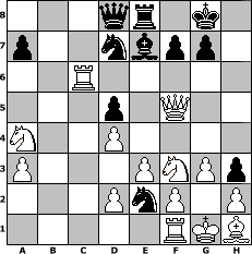 Partie-Notation im PGN-Format [Event "Alberto Giacometti - Schweizer Künstler"] [Site "www.mySchach.de"] [Date "2021.10.01"] [Round "1"] [White "kalle"] [Black "jeremyt"] [ECO "E00"] [WhitemyELO "1676"] [BlackmyELO "2113"] [Result "0-1"] [TimeControl "10/2592000"] [WhiteDays "82"] [BlackDays "84"] [MySchachNr "123112"] 1. d4 Nf6 2. c4 e6 3. g3 d5 4. Nc3 Bb4 5. Bg2 O-O 6. a3 Be7 7. cxd5 exd5 8. Nf3 c6 9. O-O Bf5 10. b4 Nbd7 11. Bb2 Re8 12. b5 Rc8 13. bxc6 bxc6 14. e3 h5 15. Rc1 Rb8 16. Na4 Ne4 17. Rxc6 h4 18. Bc3 h3 19. Bh1 Rb1 20. Qxb1 Nxc3 21. Qxf5 Ne2# 0-1 Stellungs-Notation im FEN-Format 3qr1k1/p2nbpp1/2R5/3p1Q2/N2P4/P3PNPp/3PnP1P/5RKB - - - 1 22 Geschlagene Figuren Weiss: Geschlagene Figuren Schwarz: Klicken Sie auf eine geschlagene Figur um den gewünschten Zug darzustellen!