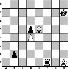 Partie-Notation im PGN-Format [Event "JasWi-1"] [Site "www.mySchach.de"] [Date "2015.08.21"] [Round "1"] [White "Joschi"] [Black "sinnlos"] [ECO "C60"] [WhitemyELO "1601"] [BlackmyELO "1529"] [Result "0-1"] [TimeControl "10/2592000"] [WhiteDays "30"] [BlackDays "30"] [MySchachNr "100114"] 1. e4 e5 2. Nf3 Nc6 3. Bb5 Nge7 4. O-O a6 5. Ba4 d6 6. h3 b5 7. Bb3 Na5 8. c3 Nxb3 9. Qxb3 Be6 10. Qc2 h6 11. d4 Bc4 12. Re1 exd4 13. cxd4 Be6 14. Bf4 Ng6 15. Bg3 Be7 16. Nc3 O-O 17. a3 c6 18. Rac1 Rc8 19. b4 d5 20. e5 Bh4 21. Nxh4 Nxh4 22. Ne2 Nf5 23. Bh2 Qb6 24. Qd3 Rc7 25. g4 Ne7 26. Nf4 a5 27. Nxe6 fxe6 28. f4 axb4 29. axb4 Kh8 30. Rf1 Ra7 31. f5 exf5 32. gxf5 Ng8 33. Rf2 Qd8 34. Rxc6 Ra1+ 35. Kg2 Qg5+ 36. Bg3 Ne7 37. h4 Qg4 38. Rcc2 Nxf5 39. Kh2 g6 40. Rf4 Qd1 41. Qxd1 Rxd1 42. Bf2 g5 43. hxg5 hxg5 44. Rg4 Rb1 45. Rxg5 Rxb4 46. Rc3 Ng7 47. Rh3+ Kg8 48. Be3 Rb2+ 49. Kg3 Re2 50. Kh4 b4 51. e6 b3 52. Rg1 b2 53. Bh6 Re4+ 54. Kg3 Rxe6 55. Kh2 Rf7 56. Rb1 Rf2+ 57. Kg1 Rfe2 58. Rf1 Rg6+ 59. Kh1 Ra6 60. Bxg7 Ra1 61. Rhf3 Ree1 62. Rf8+ Kh7 63. Be5 Rxf1+ 64. Rxf1 Rxf1+ 0-1 Stellungs-Notation im FEN-Format 8/7k/8/3pB3/3P4/8/1p6/5r1K - - - 0 65 Geschlagene Figuren Weiss: Geschlagene Figuren Schwarz: Klicken Sie auf eine geschlagene Figur um den gewünschten Zug darzustellen!