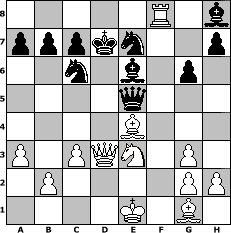 Partie-Notation im PGN-Format [Event "April April April"] [Site "www.mySchach.de"] [Date "2016.04.15"] [Round "1"] [White "alibengali"] [Black "Joschi"] [Variant "Fischerrandom"] [SetUp "1"] [FEN "rqnnkrbb/pppppppp/8/8/8/8/PPPPPPPP/RQNNKRBB w KQkq - 0 1"] [WhitemyELO "1673"] [BlackmyELO "1522"] [Result "1-0"] [TimeControl "10/2592000"] [WhiteDays "52"] [BlackDays "58"] [MySchachNr "103294"] 1. g3 f5 2. f4 d6 3. d4 g6 4. Nd3 Nc6 5. e3 e6 6. c3 N8e7 7. e4 fxe4 8. Bxe4 e5 9. dxe5 dxe5 10. Ne3 exf4 11. Nxf4 Qd8 12. Qc2 Qd6 13. Rd1 Qe5 14. a3 Rd8 15. Rxd8+ Kxd8 16. Ne6+ Bxe6 17. Rxf8+ Kd7 18. Qd3+ 1-0 Stellungs-Notation im FEN-Format 5R1b/pppkn2p/2n1b1p1/4q3/4B3/P1PQN1P1/1P4PP/4K1B1 - - - 2 18 Geschlagene Figuren Weiss: Geschlagene Figuren Schwarz: Klicken Sie auf eine geschlagene Figur um den gewünschten Zug darzustellen!