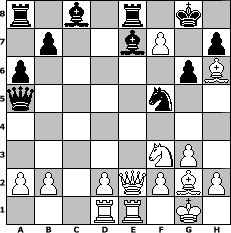 game notation in PGN-format [Event "Katalanisch"] [Site "www.myChess.de"] [Date "2012.06.11"] [Round "1"] [White "Tigerle"] [Black "Seneca"] [ECO "E06"] [WhitemyELO "1519"] [BlackmyELO "1393"] [Result "1-0"] [TimeControl "10/1728000"] [WhiteDays "20"] [BlackDays "20"] [MyChessNo "82158"] 1. d4 Nf6 2. c4 e6 3. g3 d5 4. Bg2 Be7 5. Nf3 c6 6. O-O O-O 7. Nc3 a6 8. Qc2 Nbd7 9. e4 dxe4 10. Nxe4 Nxe4 11. Qxe4 Nf6 12. Qe2 g6 13. Bh6 Re8 14. Rad1 Bf8 15. Bg5 Be7 16. Rfe1 Nh5 17. Bh6 Ng7 18. d5 cxd5 19. cxd5 Nf5 20. dxe6 Qa5 21. exf7+ 1-0 position notation in FEN-format r1b1r1k1/1p2bP1p/p5pB/q4n2/8/5NP1/PP1PQPBP/3RR1K1 - - - 0 21 Captured white pieces: Captured black pieces: Click on a captured piece in order to display the desired move!