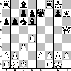game notation in PGN-format [Event "Februar-Open 2/6"] [Site "www.myChess.de"] [Date "2008.02.20"] [Round "1"] [White "nordlicht"] [Black "MartinSilies"] [ECO "C44"] [WhitemyELO "2026"] [BlackmyELO "1549"] [Result "1-0"] [TimeControl "10/1728000"] [WhiteDays "15"] [BlackDays "03"] [MyChessNo "42781"] 1. e4 e5 2. Nf3 Nc6 3. c3 f5 4. d4 fxe4 5. Nxe5 Nf6 6. Bb5 a6 7. Ba4 Bd6 8. Ng4 Nxg4 9. Qxg4 O-O 10. Bc2 Qf6 11. Qxe4 Qe7 12. O-O b6 13. Qxh7+ Kf7 14. Qh5+ Kg8 15. Bh7+ 1-0 position notation in FEN-format r1b2rk1/2ppq1pB/ppnb4/7Q/3P4/2P5/PP2PPPP/RNB2RK1 - - - 4 15 Captured white pieces: Captured black pieces: Click on a captured piece in order to display the desired move!