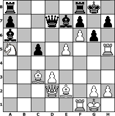 game notation in PGN-format [Event "Orang - Utan"] [Site "www.myChess.de"] [Date "2012.03.06"] [Round "1"] [White "espero"] [Black "Haki"] [ECO "A00"] [WhitemyELO "1620"] [BlackmyELO "1312"] [Result "1-0"] [TimeControl "10/2592000"] [WhiteDays "117"] [BlackDays "120"] [MyChessNo "80341"] 1. b4 e5 2. Bb2 Bxb4 3. Bxe5 Nf6 4. Nf3 Nc6 5. Bb2 d5 6. e3 Bd6 7. Be2 O-O 8. O-O Bf5 9. Nc3 Nb4 10. d3 Nc6 11. Nb5 Be7 12. Nbd4 Bd7 13. Nxc6 Bxc6 14. Ne5 Bb5 15. a4 Ba6 16. f4 c5 17. Rf3 d4 18. e4 Bd6 19. c3 dxc3 20. Bxc3 Qb6 21. Rb1 Qd8 22. Qc2 b6 23. Rbf1 b5 24. Nc6 Qd7 25. axb5 Bxb5 26. Na5 Nh5 27. e5 Be7 28. Rh3 Ba6 29. Rxh5 Qe6 30. f5 Qd7 31. f6 g6 32. Qd2 1-0 position notation in FEN-format r4rk1/p2qbp1p/b4Pp1/N1p1P2R/8/2BP4/3QB1PP/5RK1 - - - 1 32 Captured white pieces: Captured black pieces: Click on a captured piece in order to display the desired move!