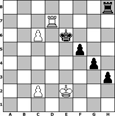 game notation in PGN-format [Event "Bremer Schl"] [Site "www.myChess.de"] [Date "2008.11.01"] [Round "1"] [White "martinus"] [Black "dbuse"] [ECO "B40"] [WhitemyELO "1928"] [BlackmyELO "2055"] [Result "0-1"] [TimeControl "10/2592000"] [WhiteDays "127"] [BlackDays "140"] [MyChessNo "49417"] 1. e4 c5 2. Nf3 e6 3. Nc3 a6 4. d4 cxd4 5. Nxd4 Qc7 6. f4 Nc6 7. Be3 b5 8. Nxc6 Qxc6 9. a3 Bb7 10. Qd3 b4 11. axb4 Bxb4 12. e5 Ne7 13. Qc4 Qxc4 14. Bxc4 Nf5 15. Bf2 Bxg2 16. Rg1 Be4 17. Kd2 a5 18. Bd3 d5 19. exd6 Bxd3 20. Kxd3 Bxd6 21. Ra4 Rd8 22. Ke4 Rb8 23. Rxa5 Rb4+ 24. Kd3 O-O 25. Rxf5 exf5 26. Bd4 Rxd4+ 27. Kxd4 Bxf4 28. Rf1 Bxh2 29. Rxf5 f6 30. Ne4 Be5+ 31. Kd3 g6 32. Rf2 Rd8+ 33. Ke2 f5 34. Nc3 Bxc3 35. bxc3 Kf7 36. Rf3 Rc8 37. Rd3 h5 38. Rh3 Rh8 39. c4 g5 40. c5 h4 41. c6 g4 42. Rd3 h3 43. Rd7+ Ke6 0-1 position notation in FEN-format 7r/3R4/2P1k3/5p2/6p1/7p/2P1K3/8 - - - 2 44 Captured white pieces: Captured black pieces: Click on a captured piece in order to display the desired move!
