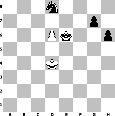 game notation in PGN-format [Event "Es weihnachtet sehr"] [Site "www.myChess.de"] [Date "2021.12.20"] [Round "1"] [White "lotchi"] [Black "beowulf"] [ECO "A84"] [WhitemyELO "1223"] [BlackmyELO "1386"] [Result "0-1"] [TimeControl "10/864000"] [WhiteDays "10"] [BlackDays "10"] [MyChessNo "123984"] 1. d4 f5 2. c4 e6 3. d5 d6 4. Nc3 Nf6 5. Bg5 h6 6. Bxf6 Qxf6 7. g3 e5 8. f4 e4 9. e3 c6 10. a4 c5 11. h4 Be7 12. Bg2 Nd7 13. Nge2 Nb6 14. b3 O-O 15. O-O Bd7 16. a5 Nc8 17. Nb5 a6 18. Qc2 axb5 19. cxb5 Bxb5 20. Rfb1 b6 21. Rd1 bxa5 22. Nc3 Bd3 23. Rxd3 exd3 24. Qxd3 Nb6 25. Ra2 Rfb8 26. Bh3 Nd7 27. Qc2 Rb4 28. Bxf5 Nf8 29. Bd3 Bd8 30. Kg2 Qe7 31. e4 Rab8 32. Bc4 Nd7 33. e5 Qf8 34. Qe2 Rxb3 35. Bxb3 Rxb3 36. Qc4 Rb4 37. Qf1 dxe5 38. fxe5 Nxe5 39. Re2 Ng4 40. Qxf8+ Kxf8 41. Kf1 Rb3 42. Ne4 c4 43. Nd2 Rxg3 44. Nxc4 a4 45. d6 Bxh4 46. Ra2 Rc3 47. Nb6 Ne3+ 48. Ke2 Rc2+ 49. Rxc2 Nxc2 50. Nxa4 Nd4+ 51. Kd3 Nc6 52. Nc5 Bd8 53. Ne6+ Kf7 54. Nxd8+ Nxd8 55. Kd4 Ke6 0-1 position notation in FEN-format 3n4/6p1/3Pk2p/8/3K4/8/8/8 - - - 2 56 Captured white pieces: Captured black pieces: Click on a captured piece in order to display the desired move!