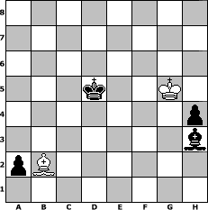 game notation in PGN-format [Event "nur Schach"] [Site "www.myChess.de"] [Date "2013.09.27"] [Round "1"] [White "brucybabe"] [Black "Vahl1"] [ECO "D20"] [WhitemyELO "1675"] [BlackmyELO "1670"] [Result "1/2-1/2"] [TimeControl "10/1728000"] [WhiteDays "20"] [BlackDays "20"] [MyChessNo "90485"] 1. d4 d5 2. c4 dxc4 3. Nc3 Nf6 4. e4 e6 5. e5 Nd5 6. Bxc4 Bb4 7. Nge2 Nb6 8. Bd3 O-O 9. O-O Bxc3 10. bxc3 N8d7 11. Ng3 h6 12. Qe2 Na4 13. Bd2 a6 14. Qe4 f5 15. exf6 Nxf6 16. Qg6 Qe8 17. Qxe8 Rxe8 18. Rfe1 b5 19. Rac1 Bb7 20. c4 c6 21. c5 Nb2 22. Bc2 Rad8 23. Bc3 Nc4 24. Bb3 Bc8 25. Bxc4 bxc4 26. Ba1 Kf7 27. Rxc4 g5 28. Ne4 Nxe4 29. Rxe4 e5 30. Rc1 exd4 31. Rxe8 Kxe8 32. Rd1 d3 33. f3 Rd5 34. Kf2 Rxc5 35. Rxd3 Rc2+ 36. Kg3 Rxa2 37. Bg7 h5 38. h3 h4+ 39. Kh2 Kf7 40. Bd4 a5 41. Be3 Ba6 42. Rc3 Bf1 43. Rxc6 Bxg2 44. Rd6 Bxf3+ 45. Rd2 Rxd2+ 46. Bxd2 a4 47. Bxg5 a3 48. Bc1 a2 49. Bb2 Ke6 50. Kg1 Kd5 51. Kf2 Be4 52. Ke3 Bf5 53. Kf4 Bxh3 54. Kg5 1/2-1/2 position notation in FEN-format 8/8/8/3k2K1/7p/7b/pB6/8 - - - 1 54 Captured white pieces: Captured black pieces: Click on a captured piece in order to display the desired move!