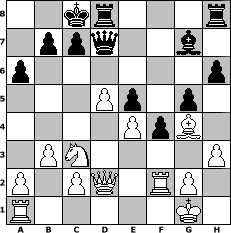 Ne5 15. b3 g5 16. Bxe5 dxe5 17. Rxf6 Bg7 18. Rf2 f5 19. e4 f4 20. Bg4 1-0