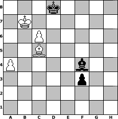 game notation in PGN-format [Event "Denksport "] [Site "www.myChess.de"] [Date "2014.02.17"] [Round "1"] [White "FrankB"] [Black "kalle"] [ECO "A46"] [WhitemyELO "1596"] [BlackmyELO "1583"] [Result "1-0"] [TimeControl "10/1728000"] [WhiteDays "103"] [BlackDays "077"] [MyChessNo "92984"] 1. d4 Nf6 2. Nf3 d5 3. h3 g6 4. e3 Bg7 5. c4 O-O 6. Nc3 Bf5 7. Qb3 b6 8. cxd5 Ne4 9. Nh4 Nxc3 10. bxc3 Be4 11. c4 c6 12. dxc6 Nxc6 13. Bd3 Bxd3 14. Qxd3 e5 15. Nf3 exd4 16. e4 Nb4 17. Qb3 d3 18. Rb1 Nc2+ 19. Kf1 Qd7 20. Bd2 Rfe8 21. Ne1 Rad8 22. Rd1 Nxe1 23. Rxe1 Qd4 24. f3 Qc5 25. g3 Qh5 26. Kg2 Qc5 27. Be3 Qc7 28. Rd1 Be5 29. f4 Bd4 30. Rxd3 Rxe4 31. Rhd1 Bf6 32. Rxd8+ Bxd8 33. Qd3 Re8 34. Kf2 Bf6 35. Qd6 Qxd6 36. Rxd6 Bc3 37. Rd7 Ra8 38. Ke2 h5 39. Kd3 Bb4 40. Bd4 Kf8 41. Bf6 Bc5 42. Ke4 Ke8 43. Rb7 a5 44. Kd5 Rc8 45. Be5 Kf8 46. Rb8 Re8 47. Rxe8+ Kxe8 48. Kc6 Bf2 49. g4 hxg4 50. hxg4 f5 51. gxf5 gxf5 52. Bc7 Be3 53. a4 Ke7 54. Bxb6 Bxf4 55. Bxa5 Be3 56. Bb4+ Kd8 57. Kb7 f4 58. c5 f3 59. c6 Bf4 60. Bc5 1-0 position notation in FEN-format 3k4/1K6/2P5/2B5/P4b2/5p2/8/8 - - - 2 60 Captured white pieces: ![]() ![]() ![]() ![]() ![]() ![]() ![]() ![]() ![]() ![]() ![]() ![]() ![]() ![]() ![]() Captured black pieces: ![]() ![]() ![]() ![]() ![]() ![]() ![]() ![]() ![]() ![]() ![]() ![]() ![]() ![]() ![]() Click on a captured piece in order to display the desired move!
