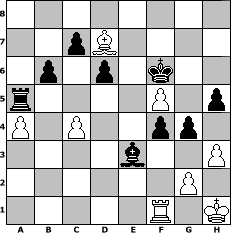 game notation in PGN-format [Event "fr"] [Site "www.myChess.de"] [Date "2011.10.14"] [Round "1"] [White "Schachfedi"] [Black "deepsabel"] [ECO "C63"] [WhitemyELO "1817"] [BlackmyELO "2010"] [Result "0-1"] [TimeControl "10/1728000"] [WhiteDays "07"] [BlackDays "11"] [MyChessNo "76824"] 1. e4 e5 2. Nf3 Nc6 3. Bb5 f5 4. d3 fxe4 5. dxe4 Nf6 6. Nc3 Bc5 7. O-O d6 8. Bg5 O-O 9. Bc4+ Kh8 10. Nd5 Be6 11. Nxf6 gxf6 12. Bxe6 fxg5 13. c3 Qf6 14. Bg4 Ne7 15. b4 Bb6 16. a4 a5 17. Qc2 Qg6 18. bxa5 Rxa5 19. Qe2 Rc5 20. Ra3 Ba5 21. Rc1 h5 22. Bd7 g4 23. Nh4 Qg5 24. Qe3 Qxe3 25. fxe3 Rc4 26. Nf5 Bb6 27. Kh1 Nxf5 28. exf5 Bxe3 29. Rb1 Bc5 30. Be6 Rf4 31. Raa1 b6 32. Rf1 Kg7 33. Rxf4 exf4 34. h3 Kf6 35. Rf1 Be3 36. c4 Ra8 37. Bd7 Ra5 0-1 position notation in FEN-format 8/2pB4/1p1p1k2/r4P1p/P1P2pp1/4b2P/6P1/5R1K - - - 3 38 Captured white pieces: ![]() ![]() ![]() ![]() ![]() ![]() ![]() ![]() ![]() ![]() ![]() ![]() ![]() ![]() ![]() Captured black pieces: ![]() ![]() ![]() ![]() ![]() ![]() ![]() ![]() ![]() ![]() ![]() ![]() ![]() ![]() ![]() Click on a captured piece in order to display the desired move!