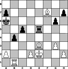 game notation in PGN-format [Event "TM7E - E60 - K"] [Site "www.myChess.de"] [Date "2013.01.15"] [Round "1"] [White "freizeitspieler"] [Black "Joschi"] [ECO "E76"] [WhitemyELO "1586"] [BlackmyELO "1544"] [Result "1-0"] [TimeControl "10/2592000"] [WhiteDays "28"] [BlackDays "30"] [MyChessNo "86159"] 1. d4 Nf6 2. c4 g6 3. Nc3 Bg7 4. e4 d6 5. f4 e5 6. dxe5 dxe5 7. Qxd8+ Kxd8 8. fxe5 Ng4 9. Bg5+ Kd7 10. Rd1+ Kc6 11. Nf3 Nxe5 12. Nxe5+ Bxe5 13. Rd3 Be6 14. b3 Nd7 15. Nd5 Nc5 16. Ne7+ Kb6 17. Be3 Bd6 18. Rxd6+ cxd6 19. b4 Rhe8 20. bxc5+ dxc5 21. Nd5+ Bxd5 22. cxd5 Rxe4 23. Kf2 Rae8 24. Bh6 Rd4 25. g3 Rxd5 26. Bg2 Rf5+ 27. Bf3 Rd8 28. Rb1+ Ka6 29. Ke2 Re8+ 30. Be3 b5 31. Bc6 b4 32. Bxe8 Re5 33. Bxf7 1-0 position notation in FEN-format 8/p4B1p/k5p1/2p1r3/1p6/4B1P1/P2PK2P/1R6 - - - 0 33 Captured white pieces: Captured black pieces: Click on a captured piece in order to display the desired move!