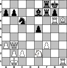 game notation in PGN-format [Event "Fruehjahr 2009"] [Site "www.myChess.de"] [Date "2009.03.12"] [Round "1"] [White "martinus"] [Black "beowulf"] [ECO "C21"] [WhitemyELO "1891"] [BlackmyELO "1396"] [Result "1-0"] [TimeControl "10/2592000"] [WhiteDays "88"] [BlackDays "90"] [MyChessNo "53491"] 1. e4 e5 2. d4 d6 3. d5 Nf6 4. Bd3 Bg4 5. f3 Bd7 6. Bg5 Be7 7. Nc3 h6 8. Be3 O-O 9. Qd2 c6 10. O-O-O cxd5 11. exd5 Qa5 12. Kb1 Nxd5 13. Nxd5 Qxd5 14. Bh7+ Kxh7 15. Qxd5 Nc6 16. Qd3+ Kg8 17. Ne2 Rfc8 18. g4 Be6 19. a3 d5 20. h4 Rf8 21. Rdg1 f6 22. g5 fxg5 23. hxg5 Bf5 24. Qxd5+ Rf7 25. g6 Bxg6 26. Rxg6 Rd8 27. Qb3 Rdf8 28. Bxh6 1-0 position notation in FEN-format 5rk1/pp2brp1/2n3RB/4p3/8/PQ3P2/1PP1N3/1K5R - - - 0 28 Captured white pieces: Captured black pieces: Click on a captured piece in order to display the desired move!