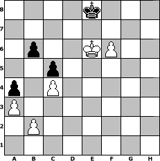 Game opened on 2005-04-03, 12:00am and finished on 2005-05-26, 10:32pm White player: Master1 Black player: paul Master1 has won the game! | |