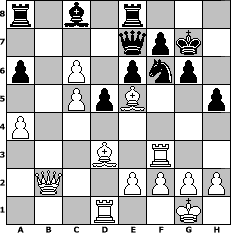 game notation in PGN-format [Event "Blitz-Masters Gruppe B"] [Site "www.myChess.de"] [Date "2005.10.08"] [Round "1"] [White "Dragonwolves"] [Black "Seneca"] [ECO "C01"] [WhitemyELO "2101"] [BlackmyELO "1668"] [Result "1-0"] [TimeControl "10/86400"] [WhiteDays "03"] [BlackDays "03"] [MyChessNo "18288"] 1. e4 e6 2. d4 Nf6 3. e5 Nd5 4. c4 Nb6 5. Nf3 d6 6. exd6 cxd6 7. Nc3 Be7 8. Bd3 O-O 9. O-O Nc6 10. Re1 d5 11. c5 Nd7 12. Bf4 b6 13. Nb5 bxc5 14. Bc7 Qe8 15. Nd6 Bxd6 16. Bxd6 Ne7 17. Qc2 h6 18. dxc5 Nf6 19. Nd4 Qd8 20. b4 Bb7 21. b5 Bc8 22. a4 Re8 23. Rad1 g6 24. Qb2 Kg7 25. Nc6 Nxc6 26. bxc6 a6 27. Be5 Qe7 28. Re3 h5 29. Rf3 1-0 position notation in FEN-format r1b1r3/4qpk1/p1P1pnp1/2PpB2p/P7/3B1R2/1Q2PPPP/3R2K1 - - - 1 29 Captured white pieces: ![]() ![]() ![]() ![]() ![]() ![]() ![]() ![]() ![]() ![]() ![]() ![]() ![]() ![]() ![]() Captured black pieces: ![]() ![]() ![]() ![]() ![]() ![]() ![]() ![]() ![]() ![]() ![]() ![]() ![]() ![]() ![]() Click on a captured piece in order to display the desired move!