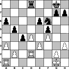 game notation in PGN-format [Event "Im Winter 2020"] [Site "www.myChess.de"] [Date "2020.01.29"] [Round "2"] [White "skuehnel"] [Black "lotchi"] [ECO "D20"] [WhitemyELO "1306"] [BlackmyELO "1297"] [Result "1/2-1/2"] [TimeControl "10/1728000"] [WhiteDays "44"] [BlackDays "60"] [MyChessNo "117162"] 1. d4 d5 2. c4 dxc4 3. e3 b5 4. Bd2 Nf6 5. Na3 Bd7 6. Nf3 a6 7. Be2 e6 8. Ne5 Bc6 9. O-O Bxa3 10. Bf3 Bxf3 11. Qxf3 Be7 12. Qxa8 Nfd7 13. Nc6 Nxc6 14. Qxc6 Qc8 15. a3 O-O 16. Ba5 Qa8 17. Qxc7 Qc8 18. Qg3 f5 19. f4 Bd8 20. Bxd8 Qxd8 21. Qf3 Qa8 22. Qxa8 Rxa8 23. Rfd1 Rd8 24. Rd2 Nf6 25. h3 1/2-1/2 position notation in FEN-format 3r2k1/6pp/p3pn2/1p3p2/2pP1P2/P3P2P/1P1R2P1/R5K1 - - - 0 25 Captured white pieces: Captured black pieces: Click on a captured piece in order to display the desired move!