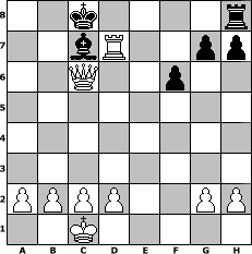 game notation in PGN-format [Event "Advents Special"] [Site "www.myChess.de"] [Date "2016.11.24"] [Round "1"] [White "Knight"] [Black "borsti"] [ECO "D00"] [WhitemyELO "1238"] [BlackmyELO "1230"] [Result "1-0"] [TimeControl "10/1728000"] [WhiteDays "20"] [BlackDays "20"] [MyChessNo "105794"] 1. d4 d5 2. e4 dxe4 3. Nc3 Nf6 4. f3 exf3 5. Qxf3 c6 6. Be3 Bg4 7. Qf2 Nbd7 8. Be2 Bxe2 9. Ngxe2 e5 10. O-O-O Nb6 11. dxe5 Nfd7 12. Rhf1 f6 13. e6 Nd5 14. exd7+ Qxd7 15. Nxd5 cxd5 16. Nf4 O-O-O 17. Rxd5 Qc7 18. Ne6 Rxd5 19. Nxc7 Rd7 20. Ne6 b6 21. Bxb6 axb6 22. Qxb6 Bd6 23. Rd1 Be5 24. Qc6+ Rc7 25. Nxc7 Bxc7 26. Rd7 1-0 position notation in FEN-format 2k4r/2bR2pp/2Q2p2/8/8/8/PPPP2PP/2K5 - - - 1 26 Captured white pieces: Captured black pieces: Click on a captured piece in order to display the desired move!