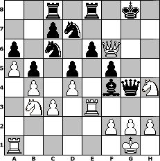 game notation in PGN-format [Event "7er2"] [Site "www.myChess.de"] [Date "2015.11.13"] [Round "1"] [White "kalle"] [Black "spiderman"] [ECO "B00"] [WhitemyELO "1599"] [BlackmyELO "1771"] [Result "0-1"] [TimeControl "10/3456000"] [WhiteDays "142"] [BlackDays "141"] [MyChessNo "101232"] 1. e4 Nc6 2. d4 d5 3. e5 Bf5 4. Nf3 e6 5. Bd3 Qd7 6. Bxf5 exf5 7. Bd2 Nge7 8. O-O Ng6 9. Bg5 h6 10. Bd2 Be7 11. a4 O-O 12. Nc3 Rfe8 13. Ne2 a6 14. b3 Rad8 15. c3 Qe6 16. Re1 Nb8 17. Qc1 Nd7 18. a5 Nb8 19. b4 Rc8 20. Qc2 Nc6 21. Nc1 b6 22. Nb3 b5 23. Qc1 Qd7 24. e6 fxe6 25. Bxh6 gxh6 26. Qxh6 Nf8 27. Re3 Bd6 28. Nh4 Qg7 29. Qh5 Qg4 30. Qh6 Bf4 31. Qf6 Nd7 0-1 position notation in FEN-format 2r1r1k1/2pn4/p1n1pQ2/Pp1p1p2/1P1P1bqN/1NP1R3/5PPP/R5K1 - - - 11 32 Captured white pieces: Captured black pieces: Click on a captured piece in order to display the desired move!