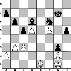 Game opened on 2005-05-27, 12:00am and finished on 2005-06-26, 10:59pm White player: bane Black player: Andreschach[adv.] The game ended with a draw! | |