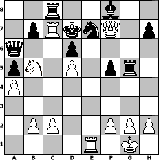 game notation in PGN-format [Event "Pedro Damiano"] [Site "www.myChess.de"] [Date "2016.09.18"] [Round "2"] [White "martinus"] [Black "sprinterde"] [ECO "C40"] [WhitemyELO "1767"] [BlackmyELO "1652"] [Result "1-0"] [TimeControl "10/2592000"] [WhiteDays "116"] [BlackDays "113"] [MyChessNo "105000"] 1. e4 e5 2. Nf3 f6 3. Nxe5 Qe7 4. Nc4 Qxe4+ 5. Ne3 Ne7 6. Bd3 Qc6 7. O-O d6 8. Nc3 Kf7 9. Bb5 Qb6 10. Bc4+ Be6 11. Bxe6+ Kxe6 12. Qe2 Kf7 13. Qc4+ Ke8 14. Re1 Qc6 15. Qb3 Kd8 16. d4 a5 17. a4 Na6 18. d5 Qb6 19. Nb5 Nc5 20. Qc4 Nd7 21. Ra3 Ne5 22. Qe4 Kd7 23. Rd1 g6 24. Rc3 f5 25. Qh4 Rc8 26. Qf6 Rg8 27. Qe6+ Kd8 28. Nc4 Nxc4 29. Rxc4 g5 30. Be3 Qa6 31. Re1 Rg6 32. Qf7 Kd7 33. Bxg5 Rxg5 34. Rxc7+ 1-0 position notation in FEN-format 2r2b2/1pRknQ1p/q2p4/pN1P1pr1/P7/8/1PP2PPP/4R1K1 - - - 0 34 Captured white pieces: Captured black pieces: Click on a captured piece in order to display the desired move!